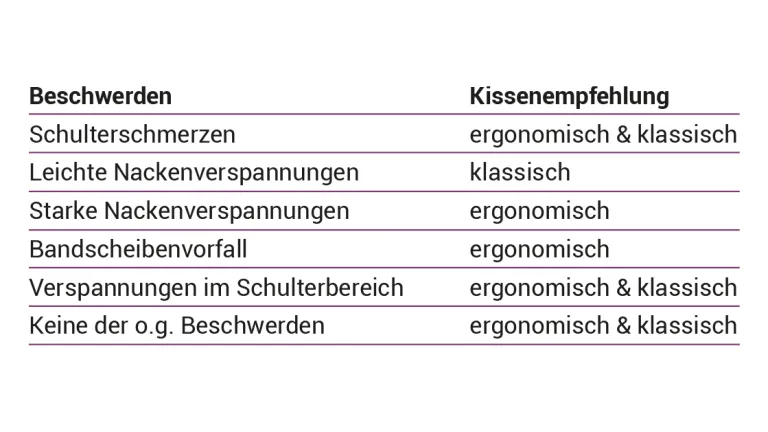 Schlafkissen und körperliche Beschwerden