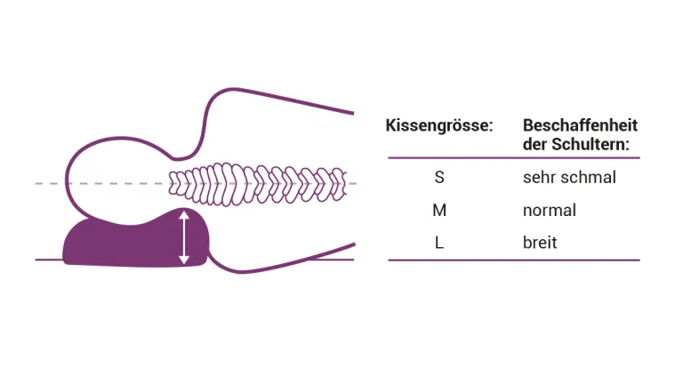 Bitte messen Sie Ihren Schulter- und Nackenbereich aus, um so die richtige Größe eines Kopfkissens zu erhalten, das Ihnen die bestmögliche Nackenunterstützung und somit Entlastung bietet. Die folgende Abbildung gibt Ihnen eine Orientierung:
