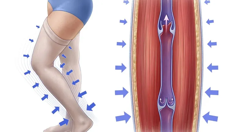 Der kontrollierte Druck, den medizinische Kompressionsstrümpfe ausüben, verringert den Durchmesser der Hauptvenen und erhöht dadurch die Geschwindigkeit und das Volumen des Blutflusses. Infolgedessen verbessert die medizinische Kompression den Bluttransport von den Extremitäten zum Herzen, verringert Blutreflux und Blutstau und sorgt für eine bessere Drainage des tiefen Venensystems. All das trägt dazu bei, die Durchblutungsrate zu erhöhen und somit zu verbessern.